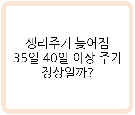 생리주기 늦어짐은 많은 여성들이 경험하는 흔한 증상이지만, 그 원인은 매우 다양합니다. 35일에서 40일 정도의 주기는 개인차 범위에 있을 수 있으나, 지속적으로 이러한 패턴이 반복되거나 다른 증상이 동반된다면 전문의와 상담받아보시는 것이 좋습니다.