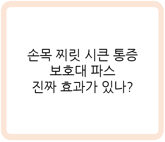 손목 통증이 있을 때 많은 분들이 보호대나 파스를 먼저 찾습니다. 과연 얼마나 효과가 있을까요?